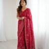 Solo Georgette Foil Print Saree With Unstiched Blouse Piece