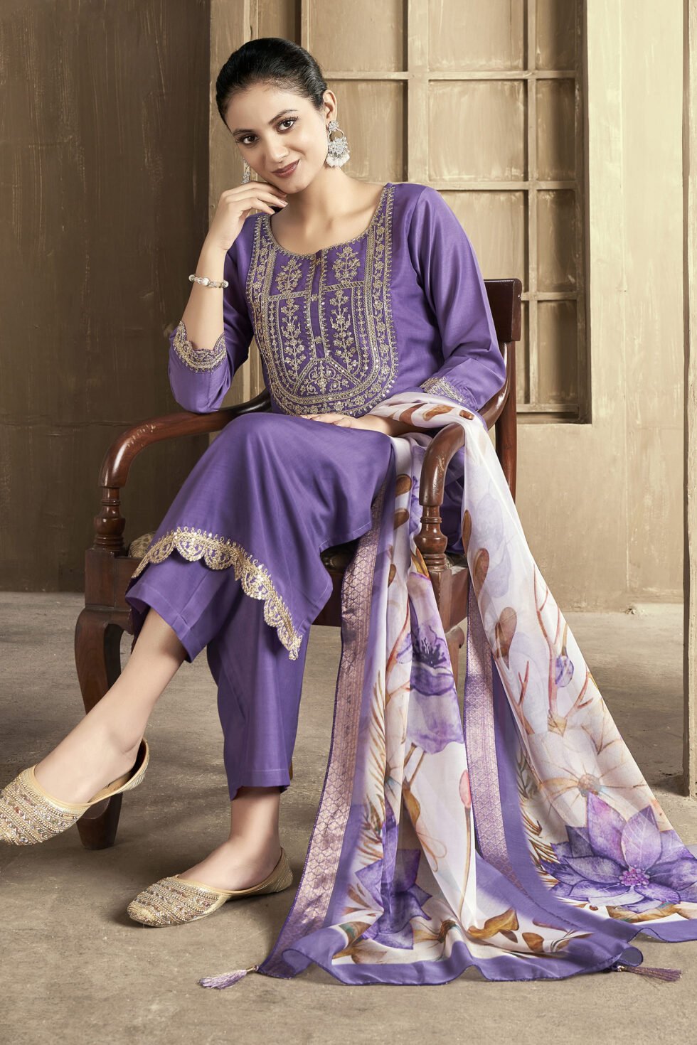 Women’s Chanderi Embroidered Straight Kurta Pant With Dupatta