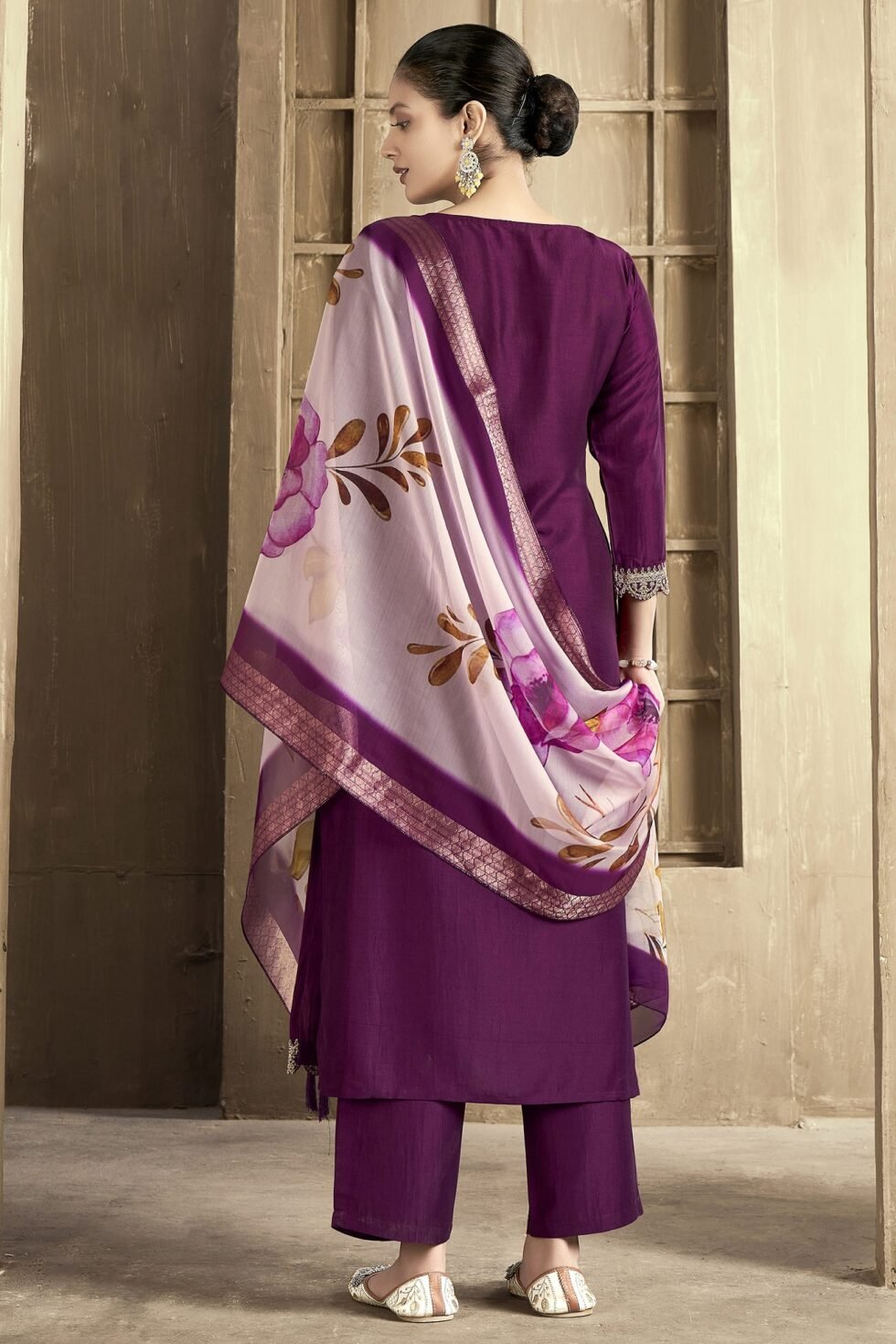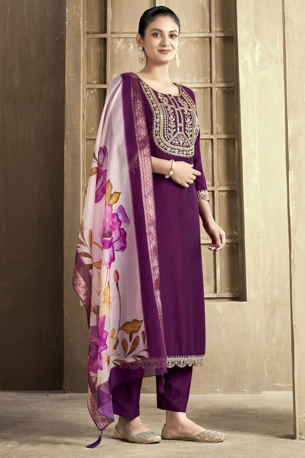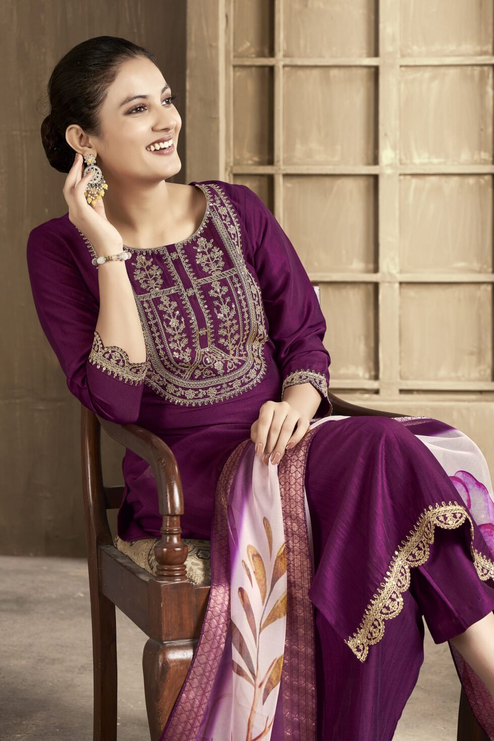 Women’s Chanderi Embroidered Straight Kurta Pant With Dupatta