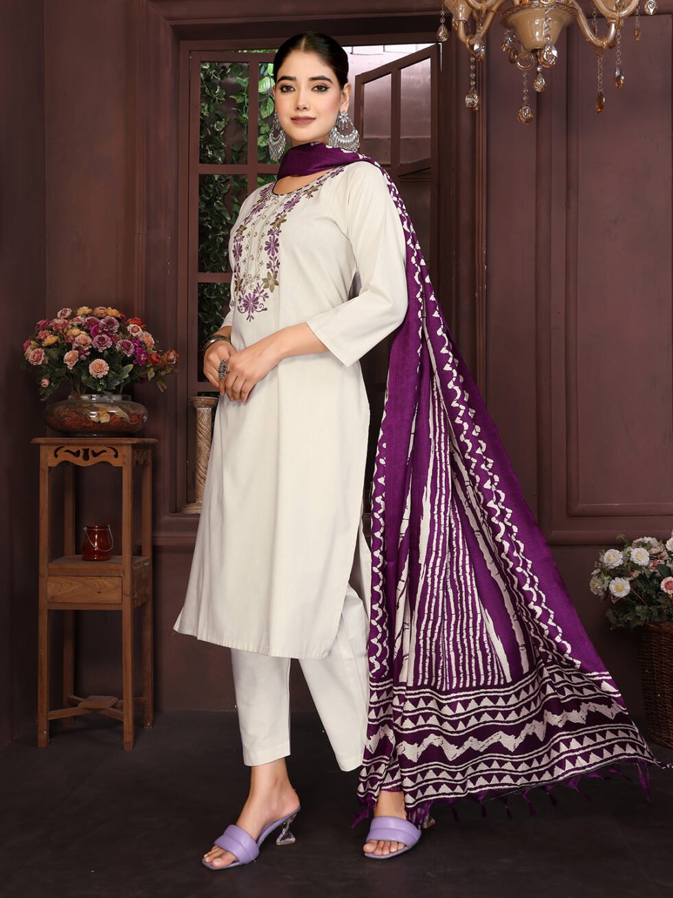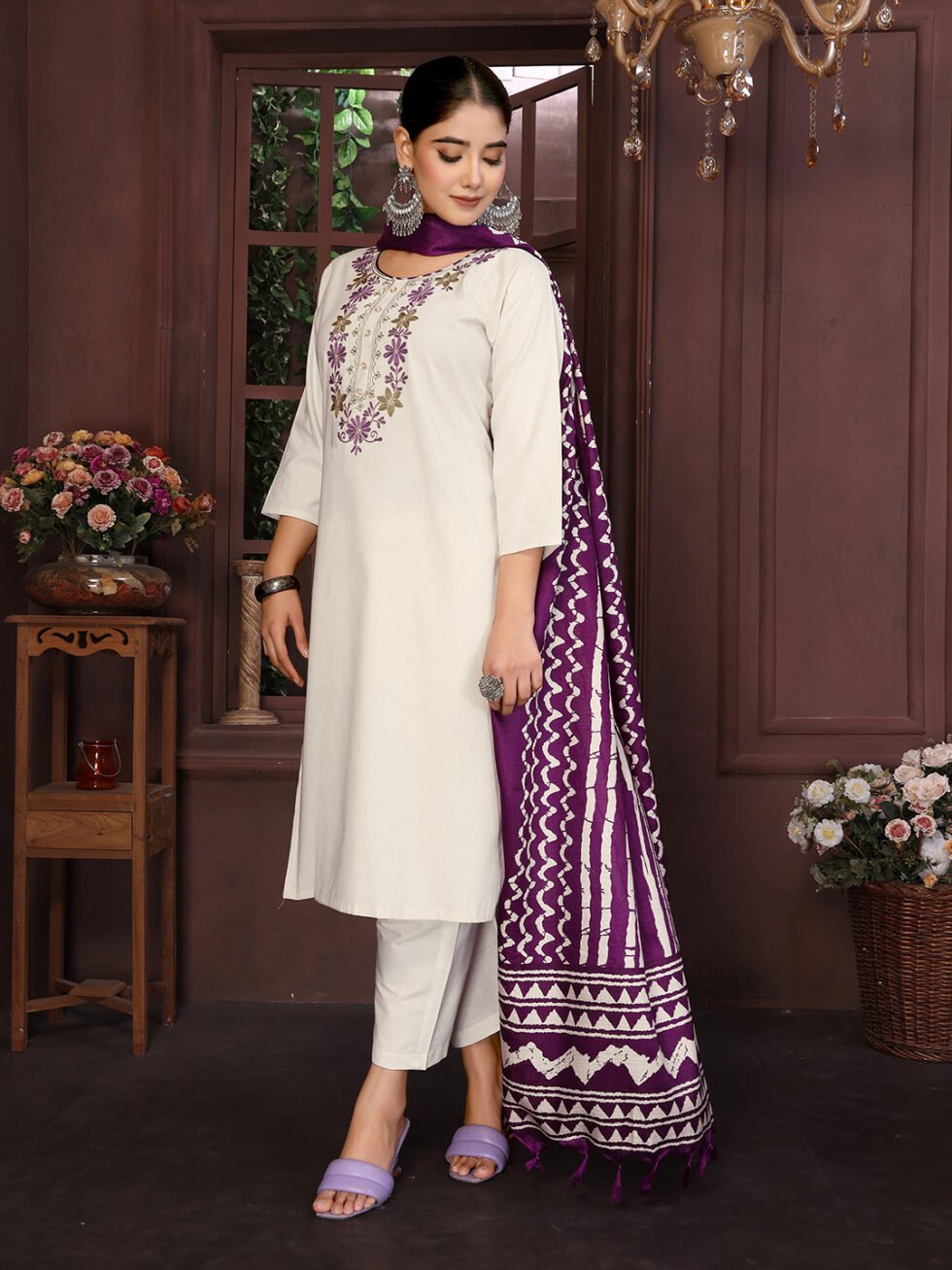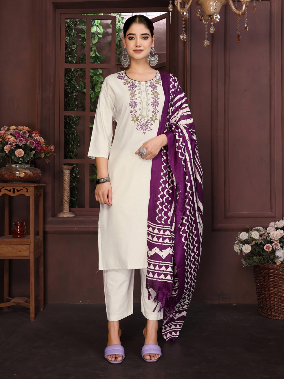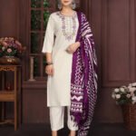 Women’s Cotton Embroidered Straight Kurta Pant With Dupatta