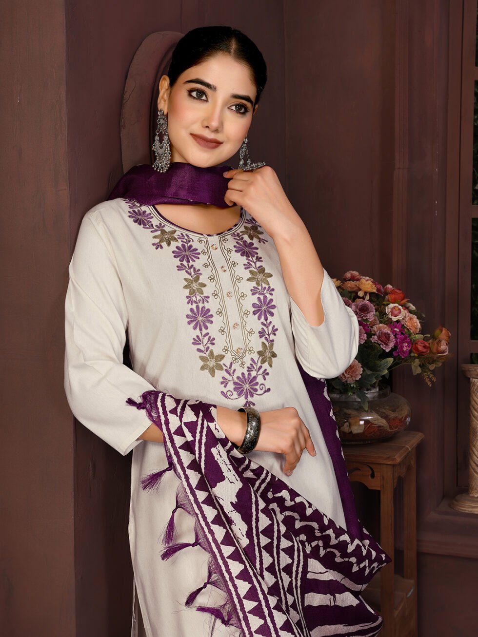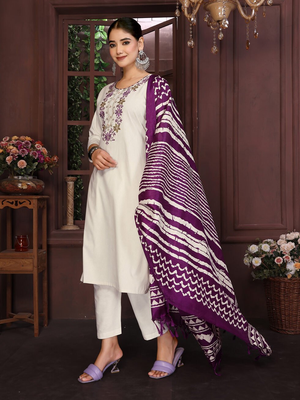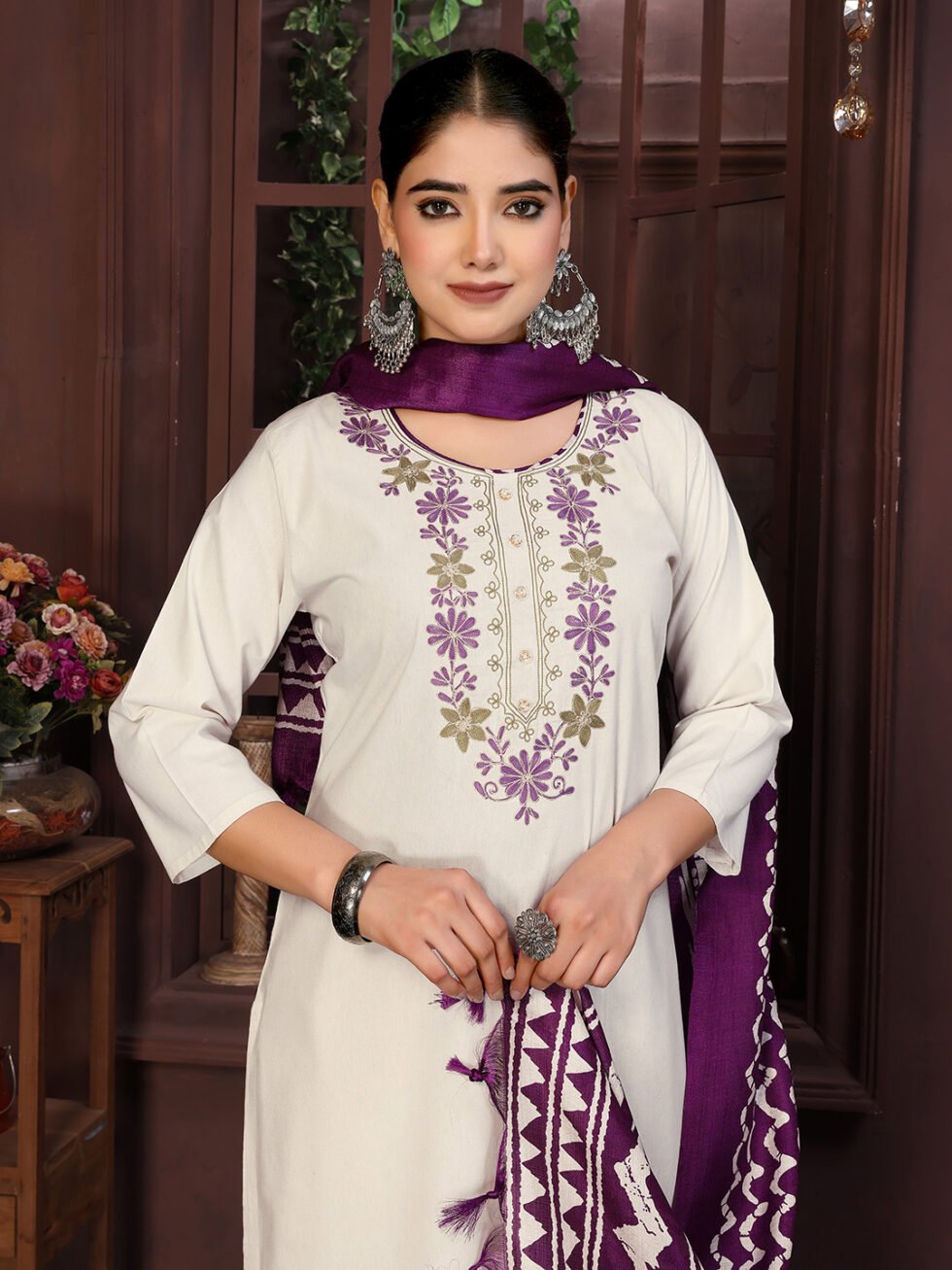 Women’s Cotton Embroidered Straight Kurta Pant With Dupatta