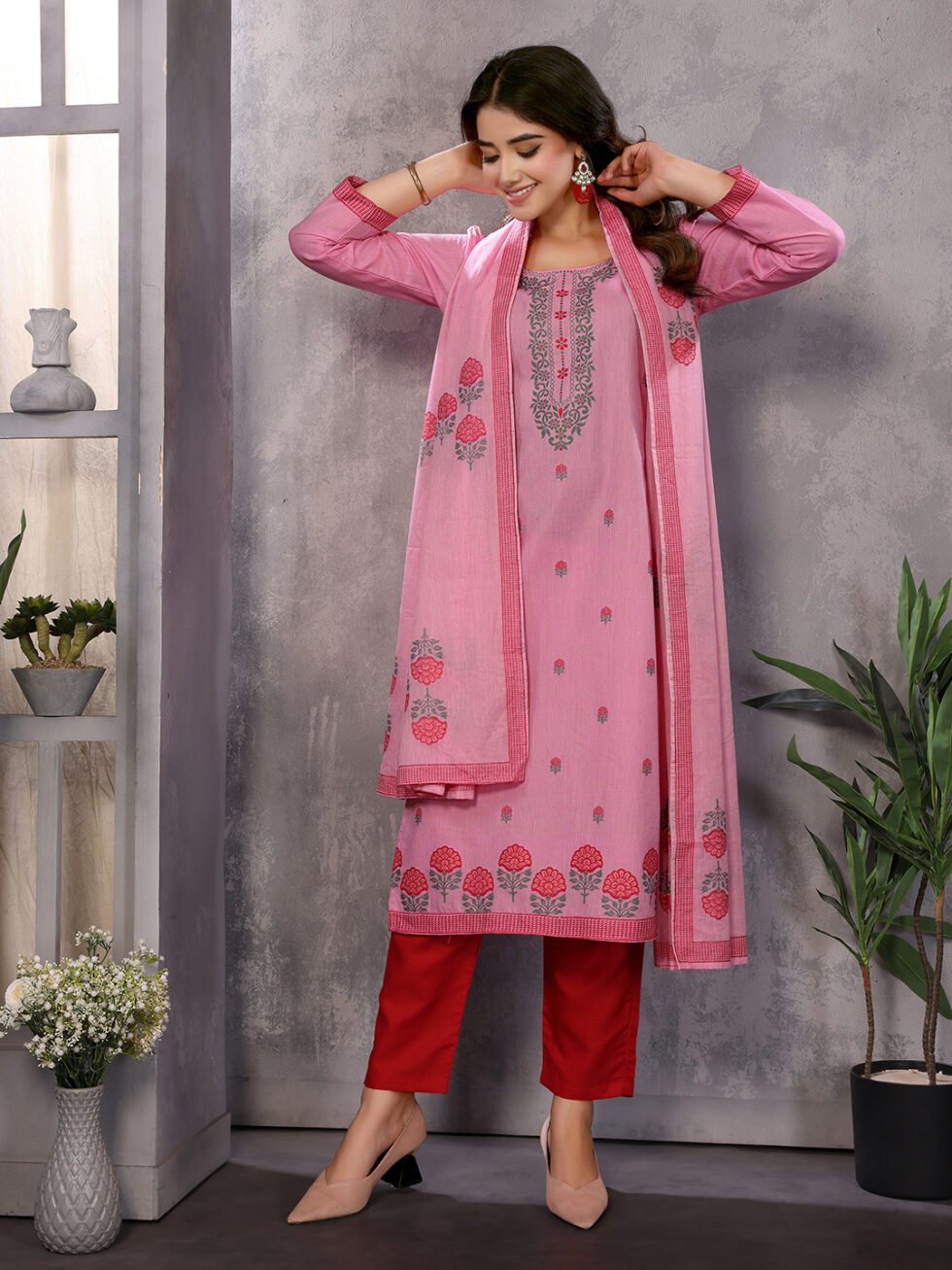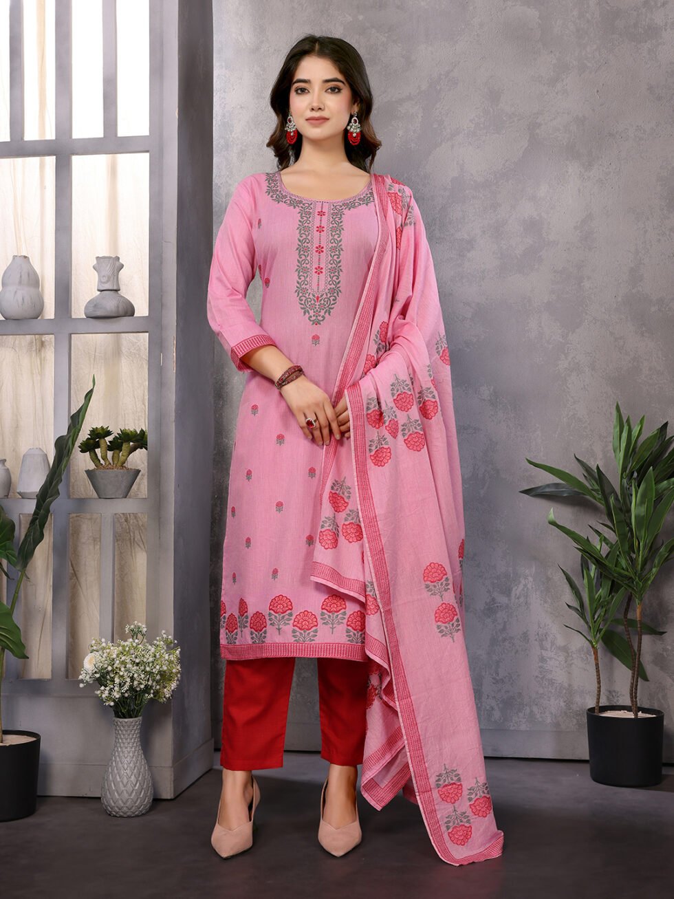 Women’s Cotton Embroidery design Straight Kurta Pant With Dupatta