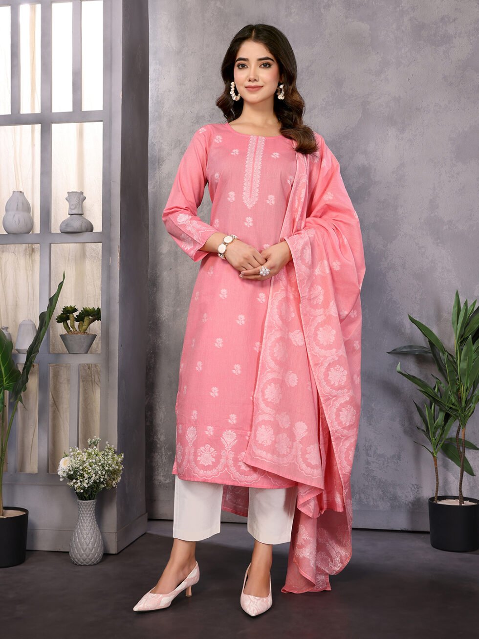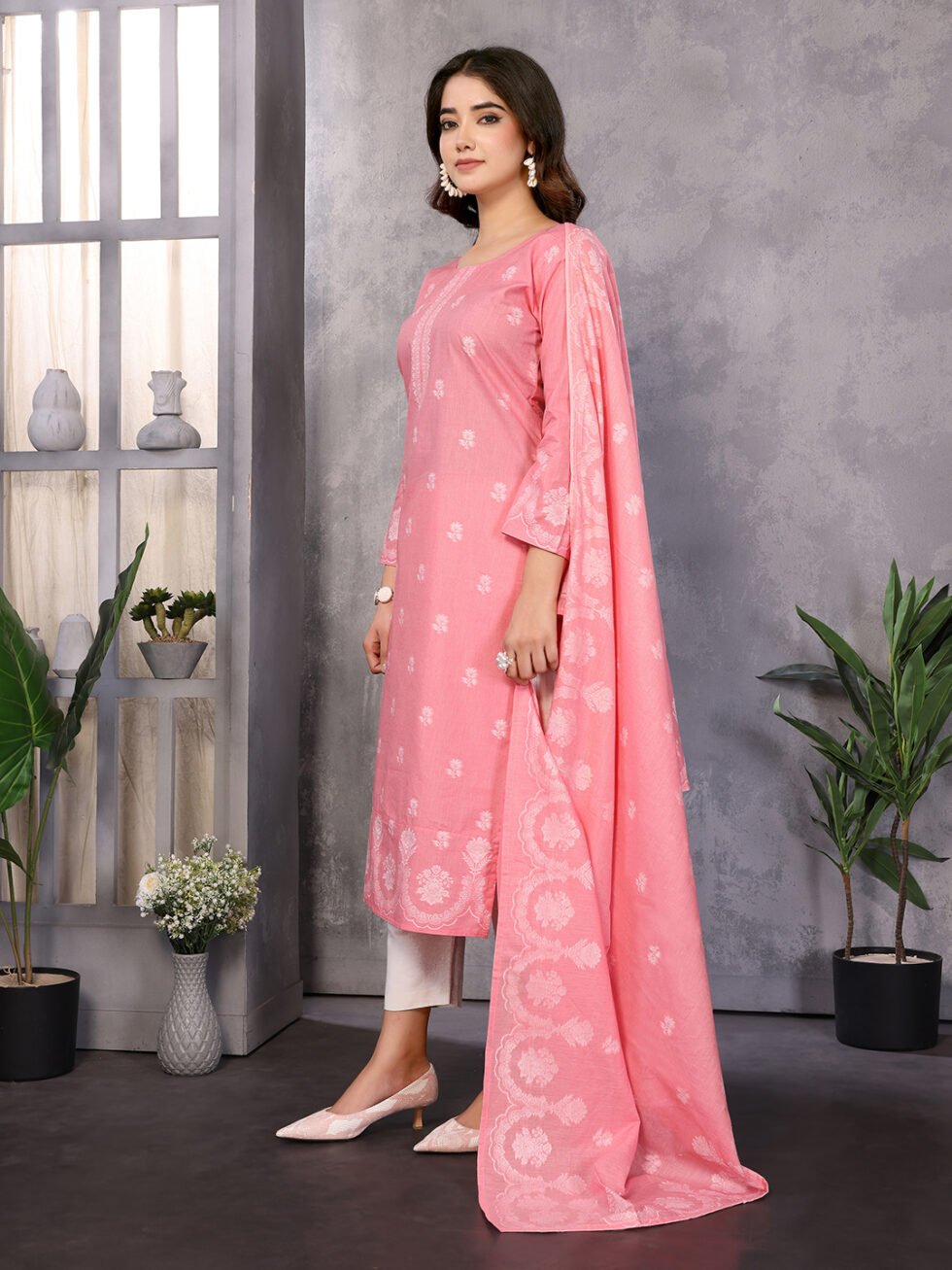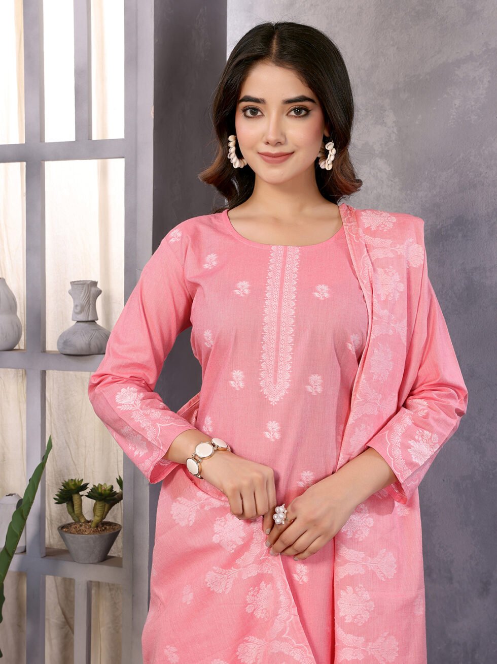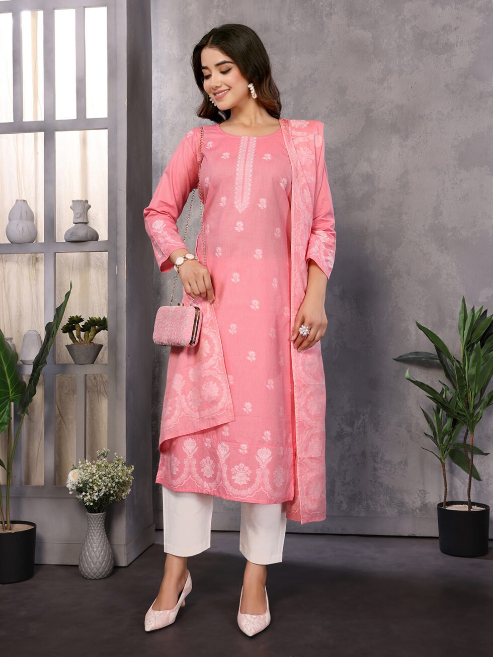 Women’s Cotton Embroidery design Straight Kurta Pant With Dupatta
