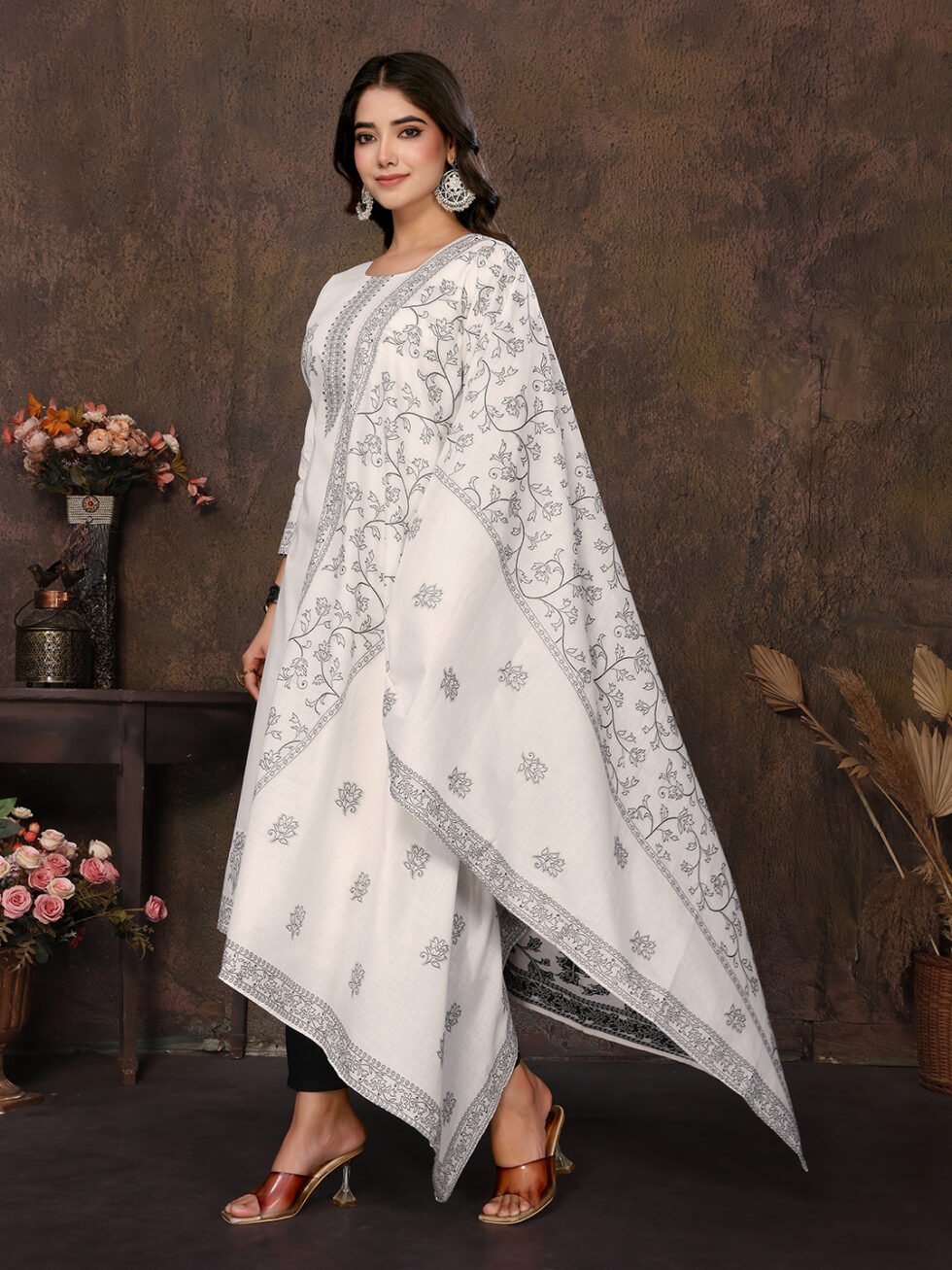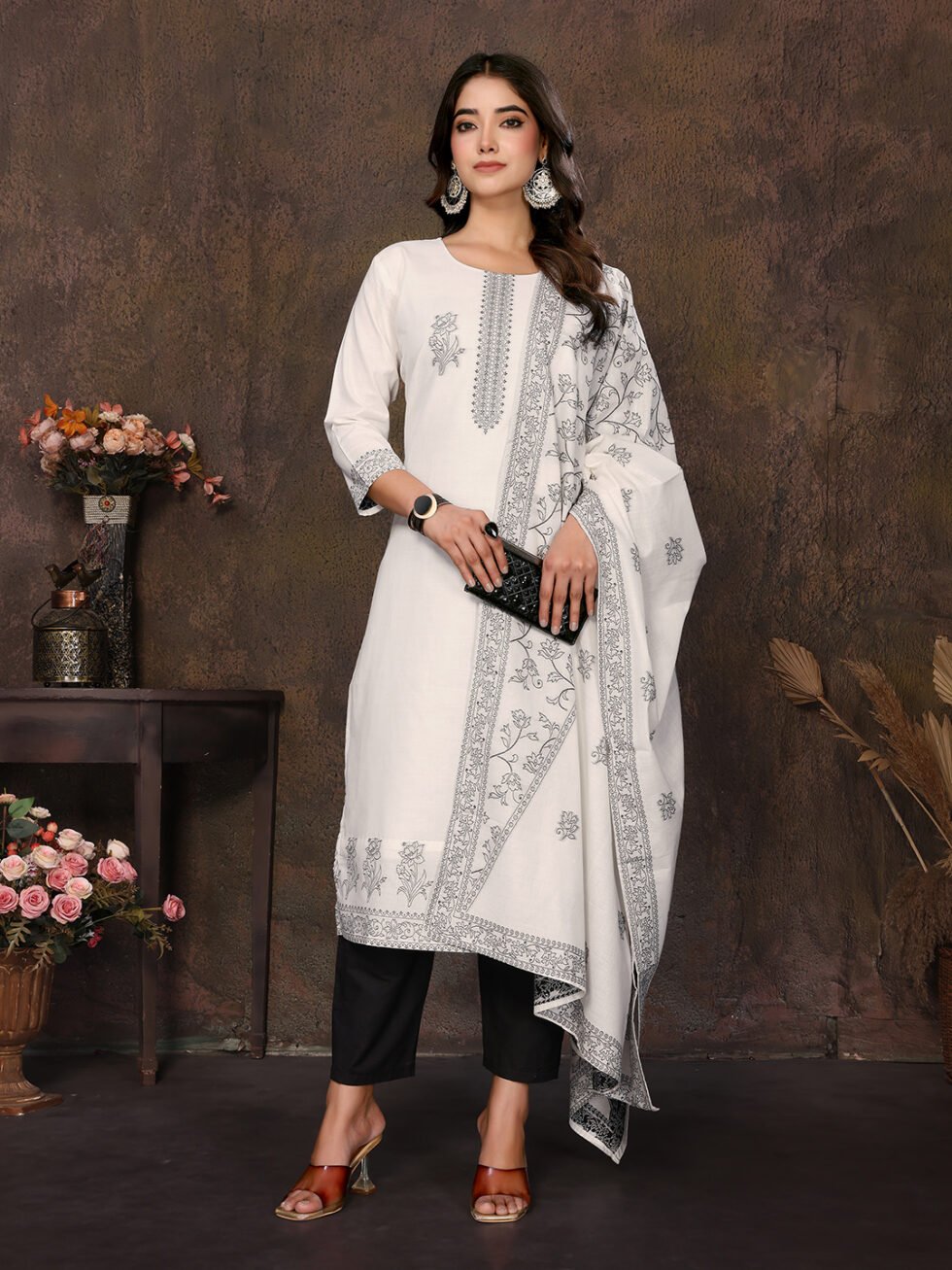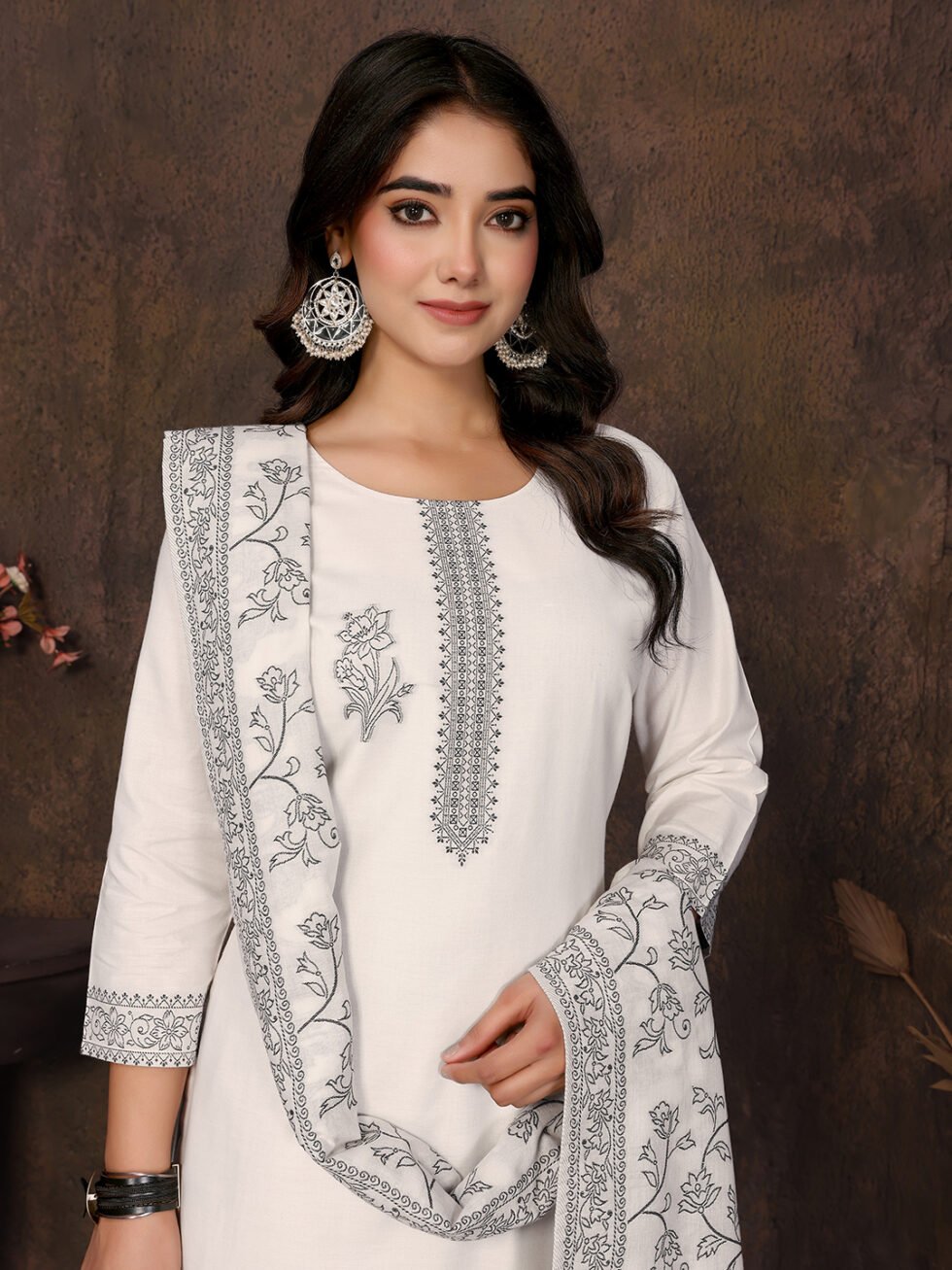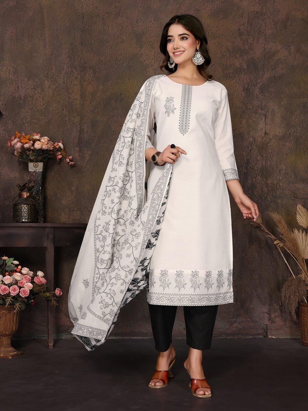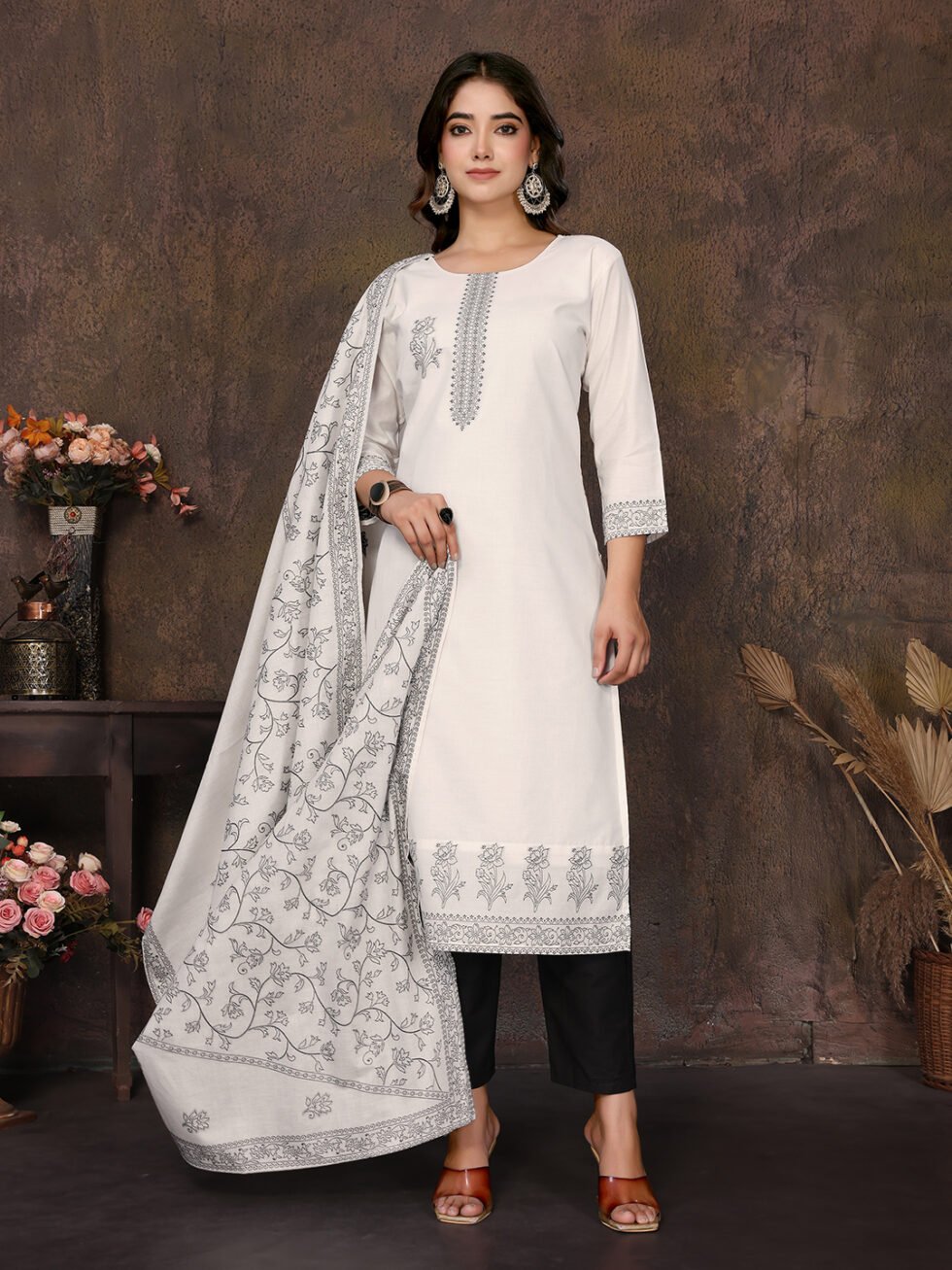 Women’s Cotton Embroidery design Straight Kurta Pant With Dupatta