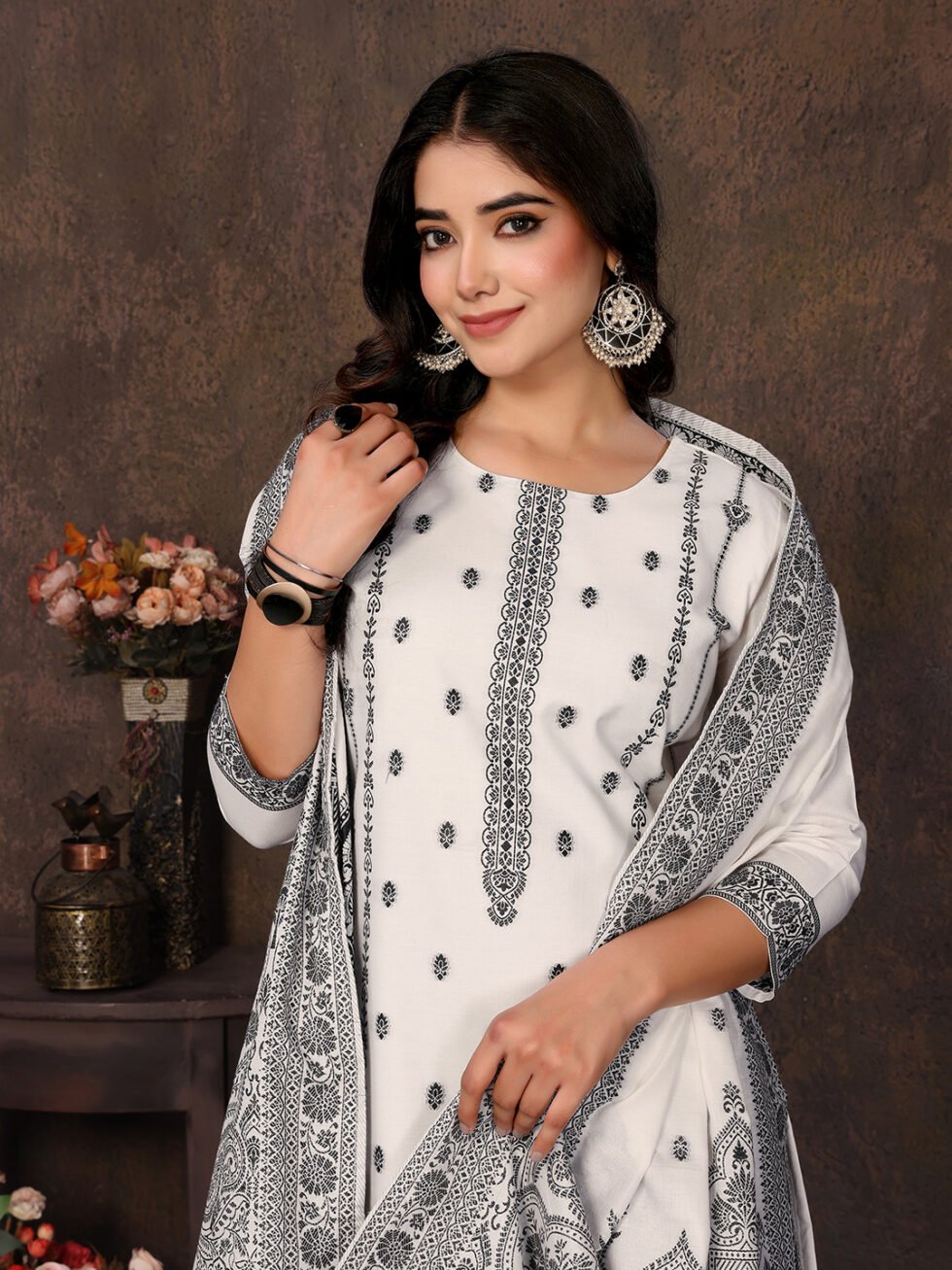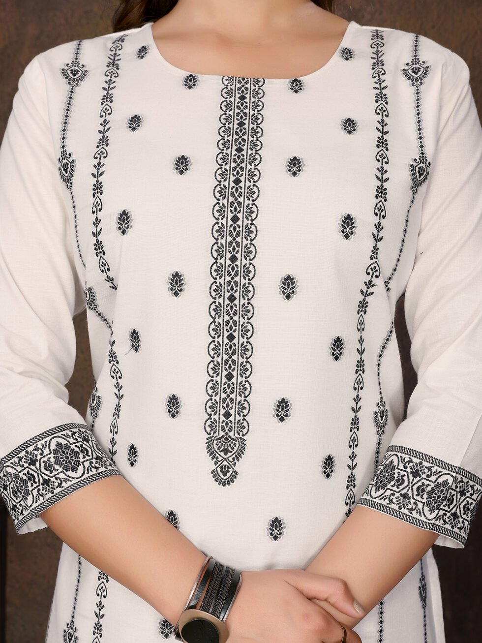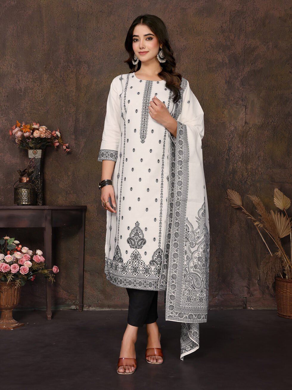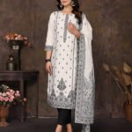 Women’s Cotton Embroidery design Straight Kurta Pant With Dupatta
