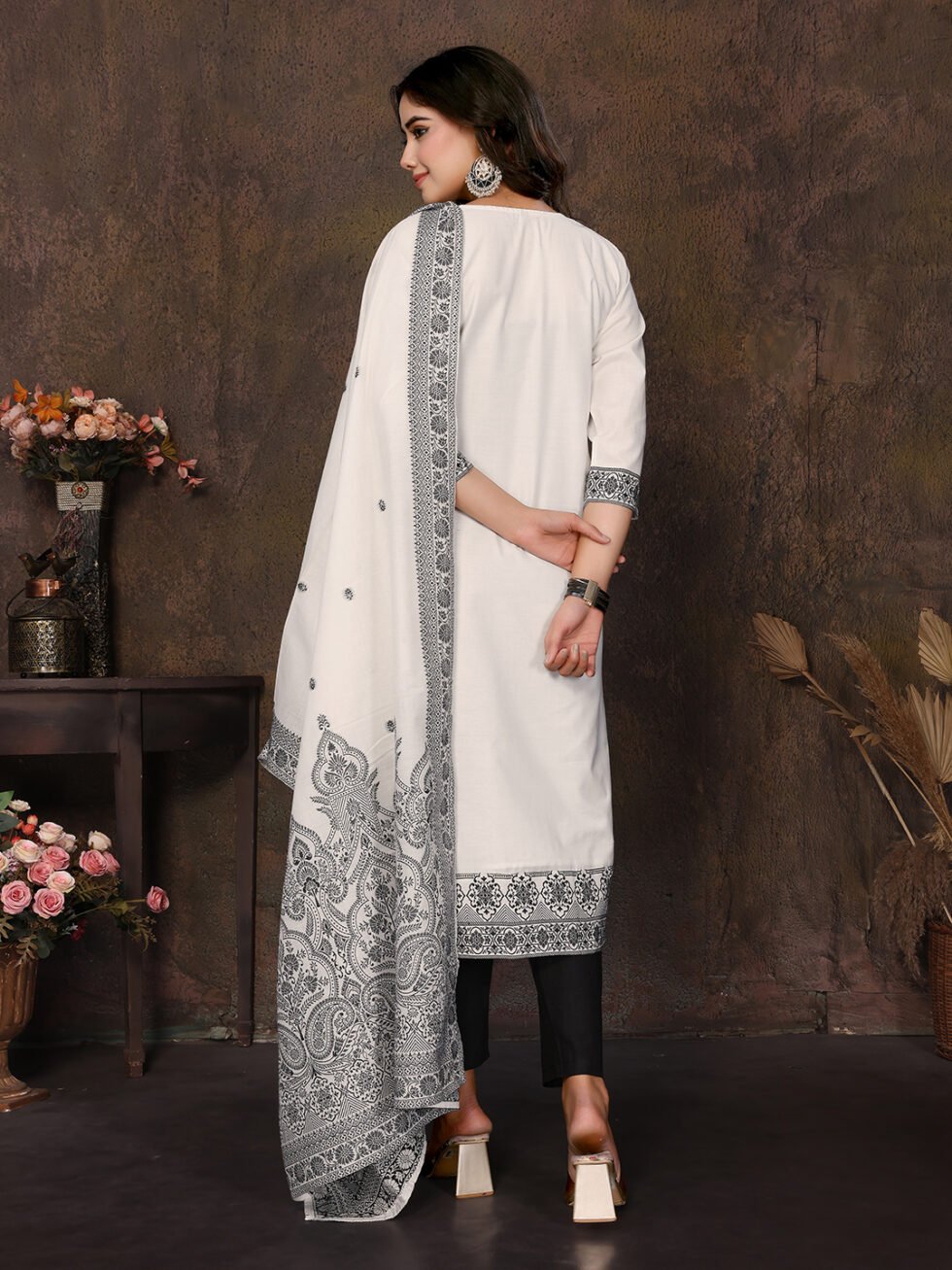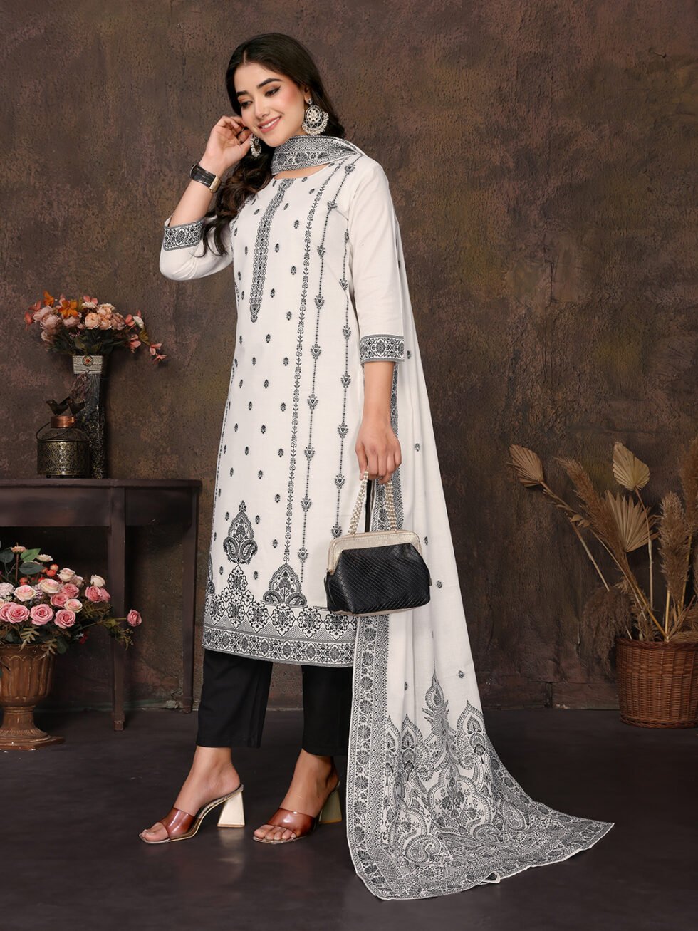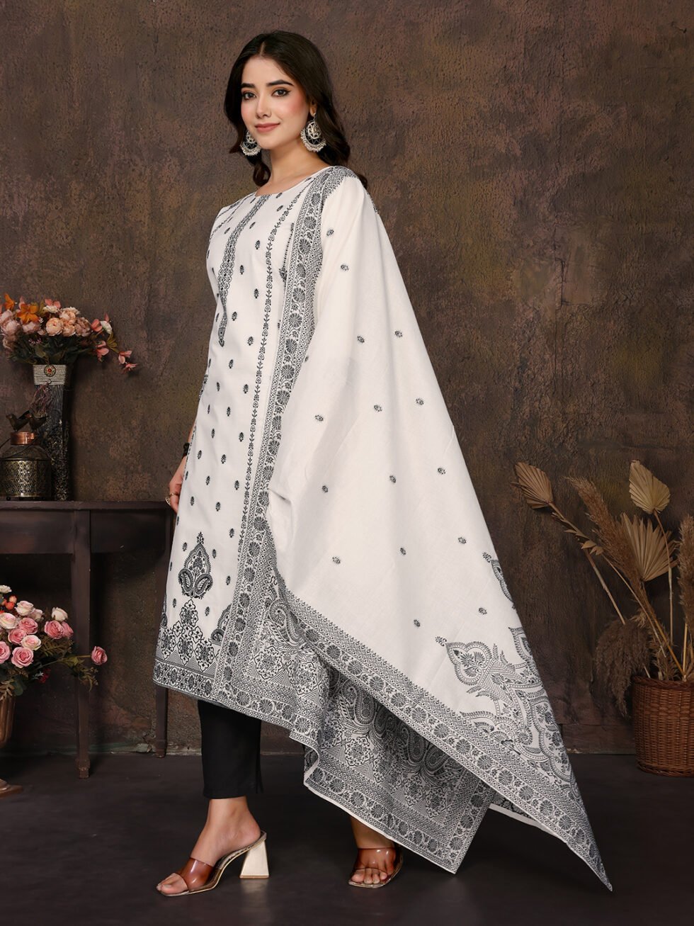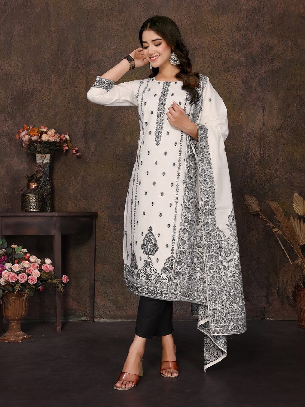 Women’s Cotton Embroidery design Straight Kurta Pant With Dupatta
