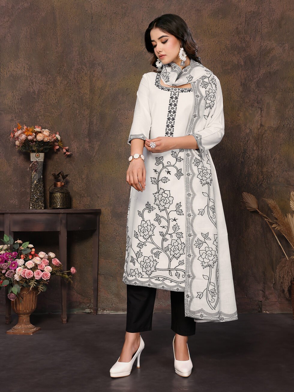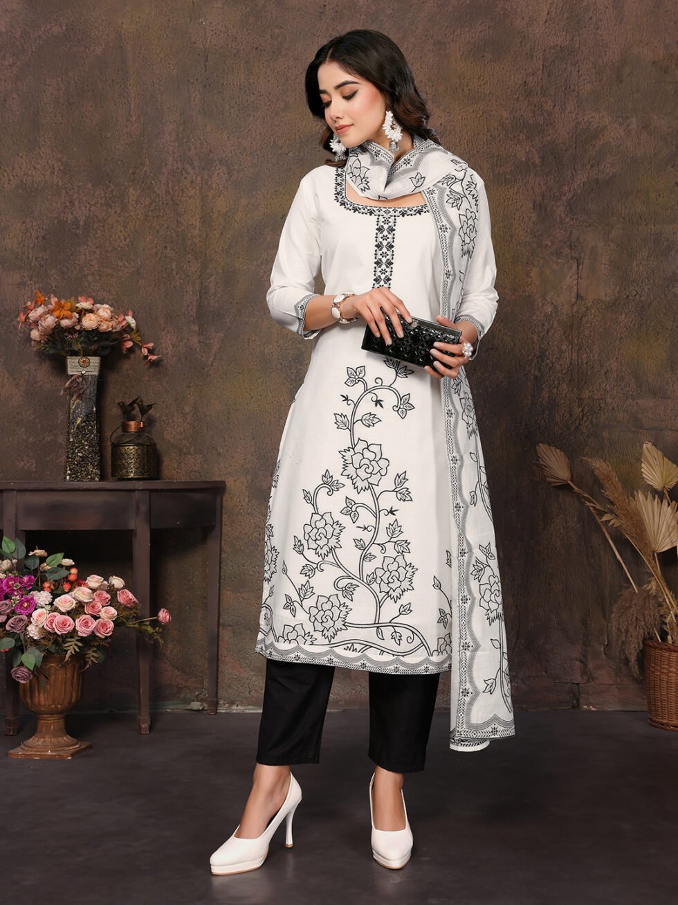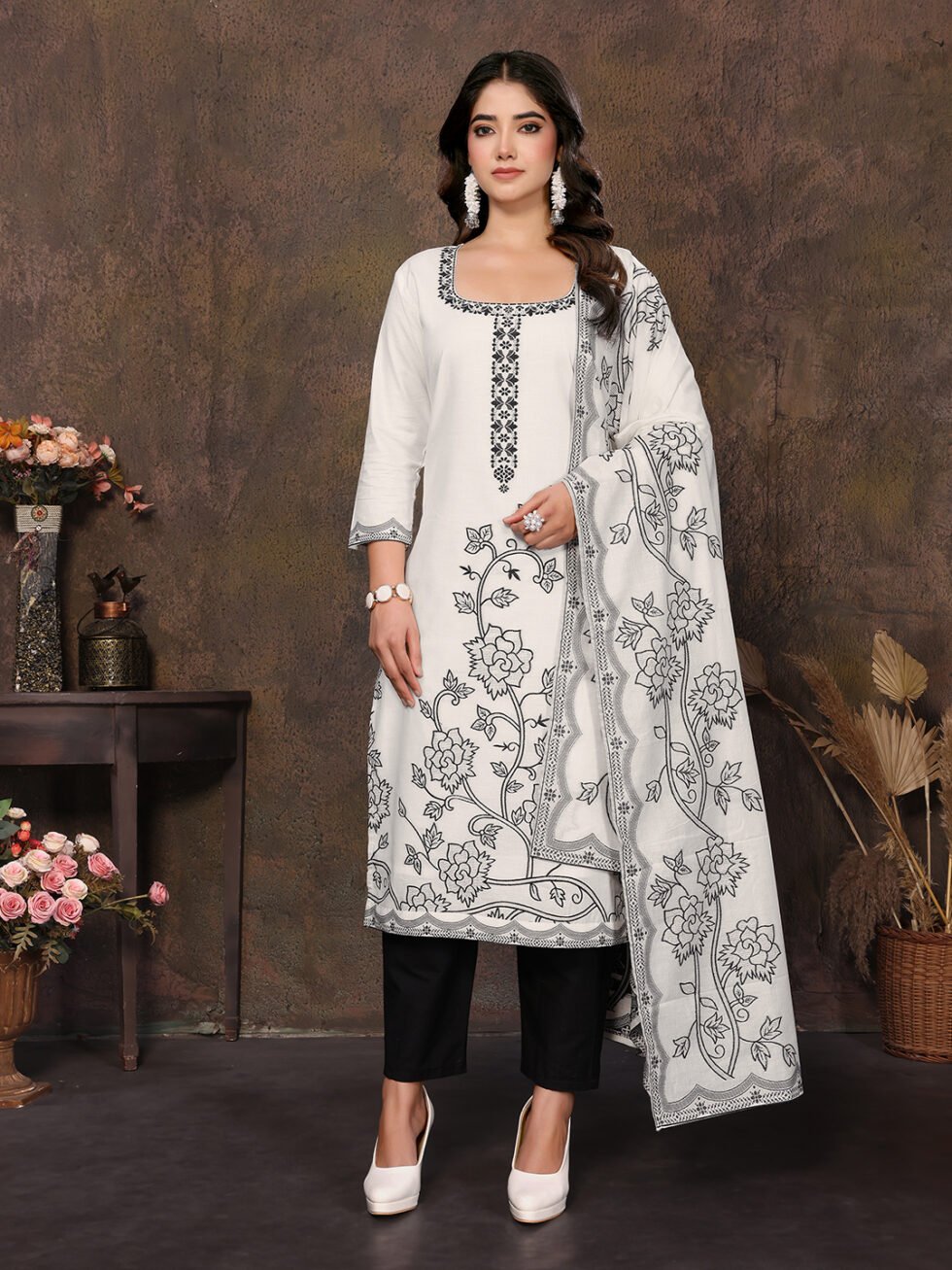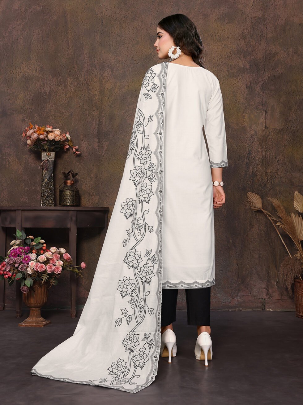Women’s Cotton Embroidery design Straight Kurta Pant With Dupatta