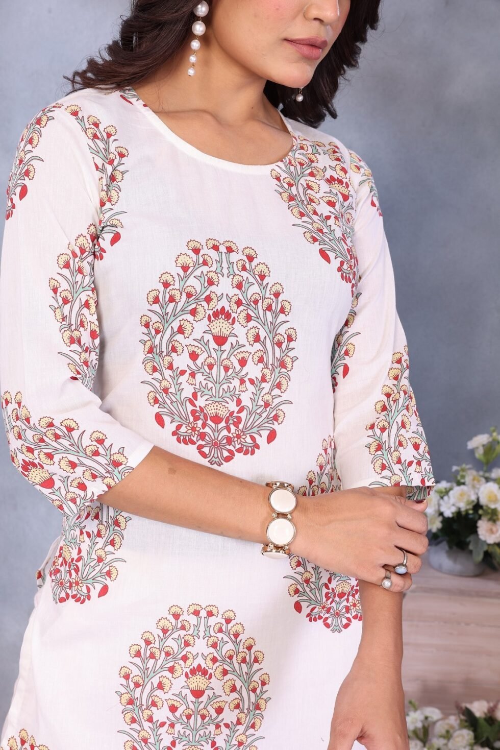 Kurti is available in Cotton material with Printed Work. This Kurti has an Floral Printed work. Perfect for, daily,office, festive wear outfit