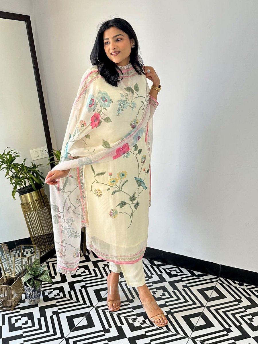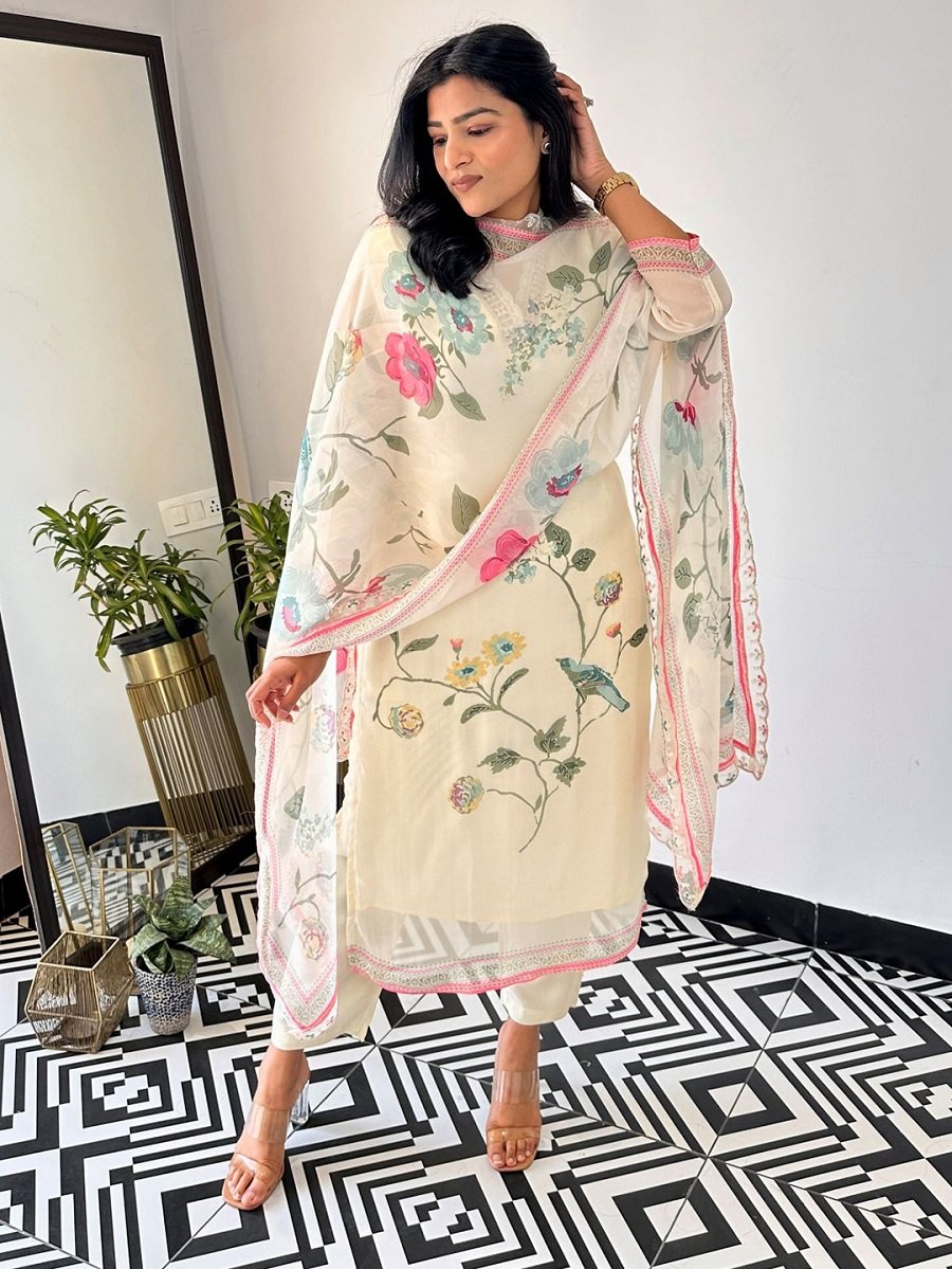 Women’s Organza Printed Straight Kurta Pant With Dupatta