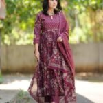 Women’s Rayon Printed Anarkali Kurta Pant With Dupatta