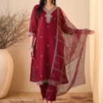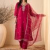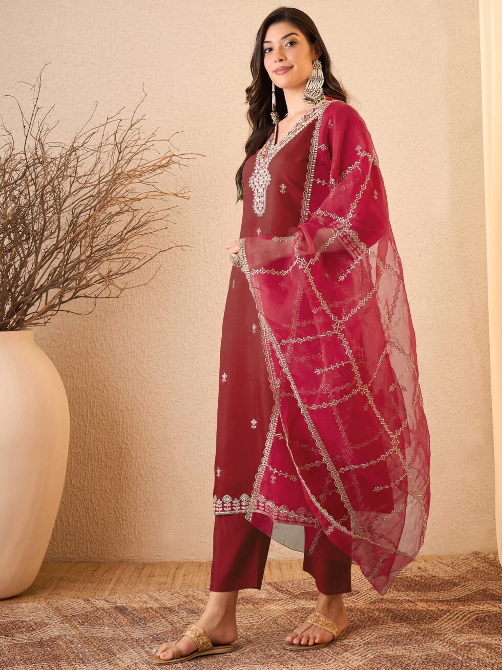 Women’s Silk Blend Embroidered Straight Kurta Pant With Dupatta