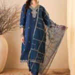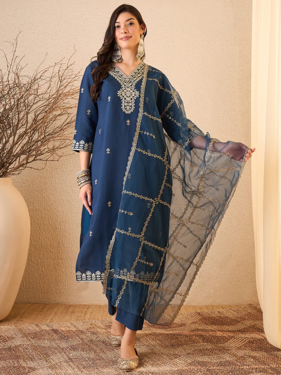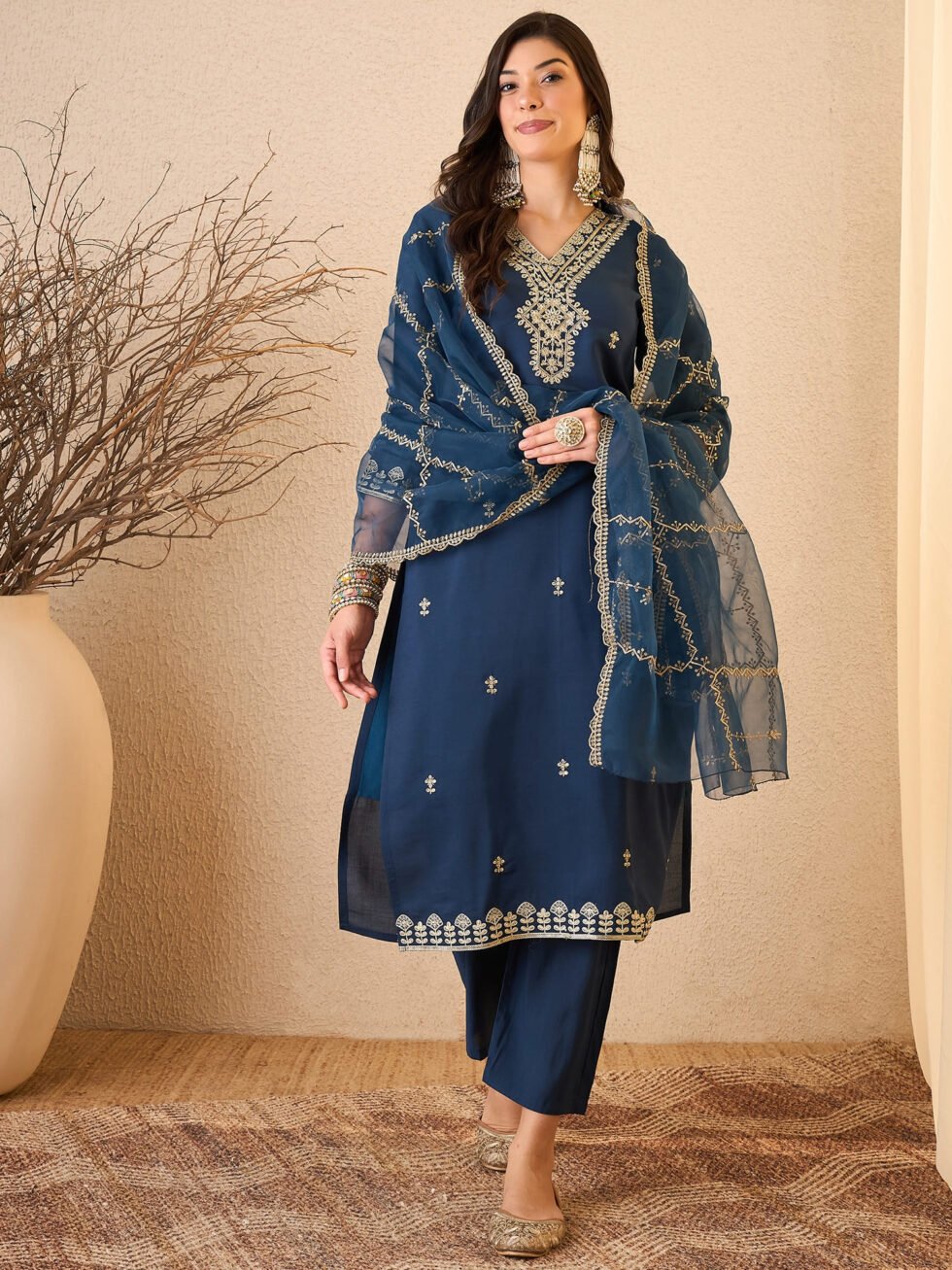 Women’s Silk Blend Embroidered Straight Kurta Pant With Dupatta