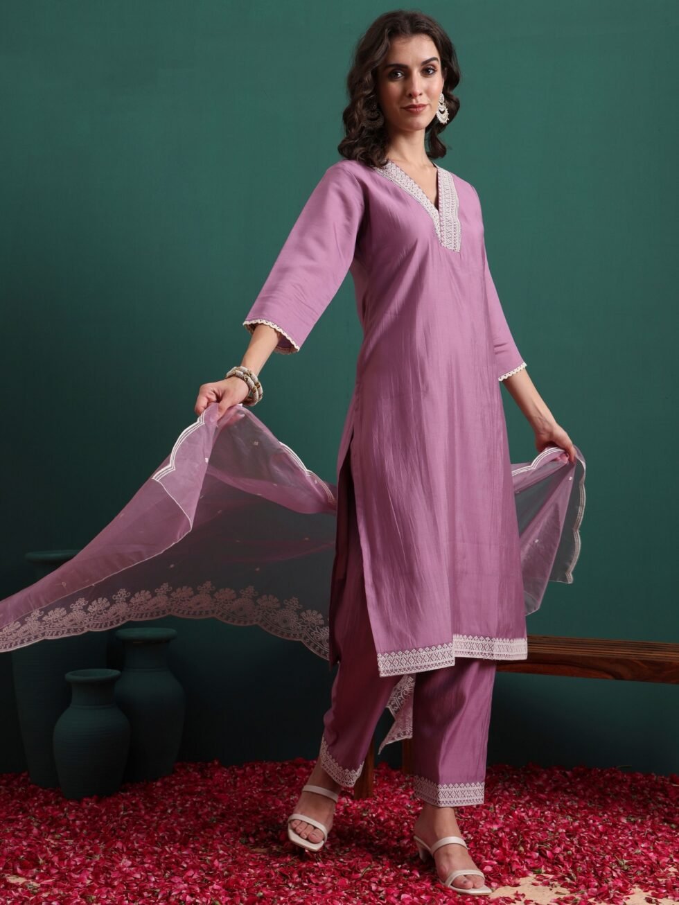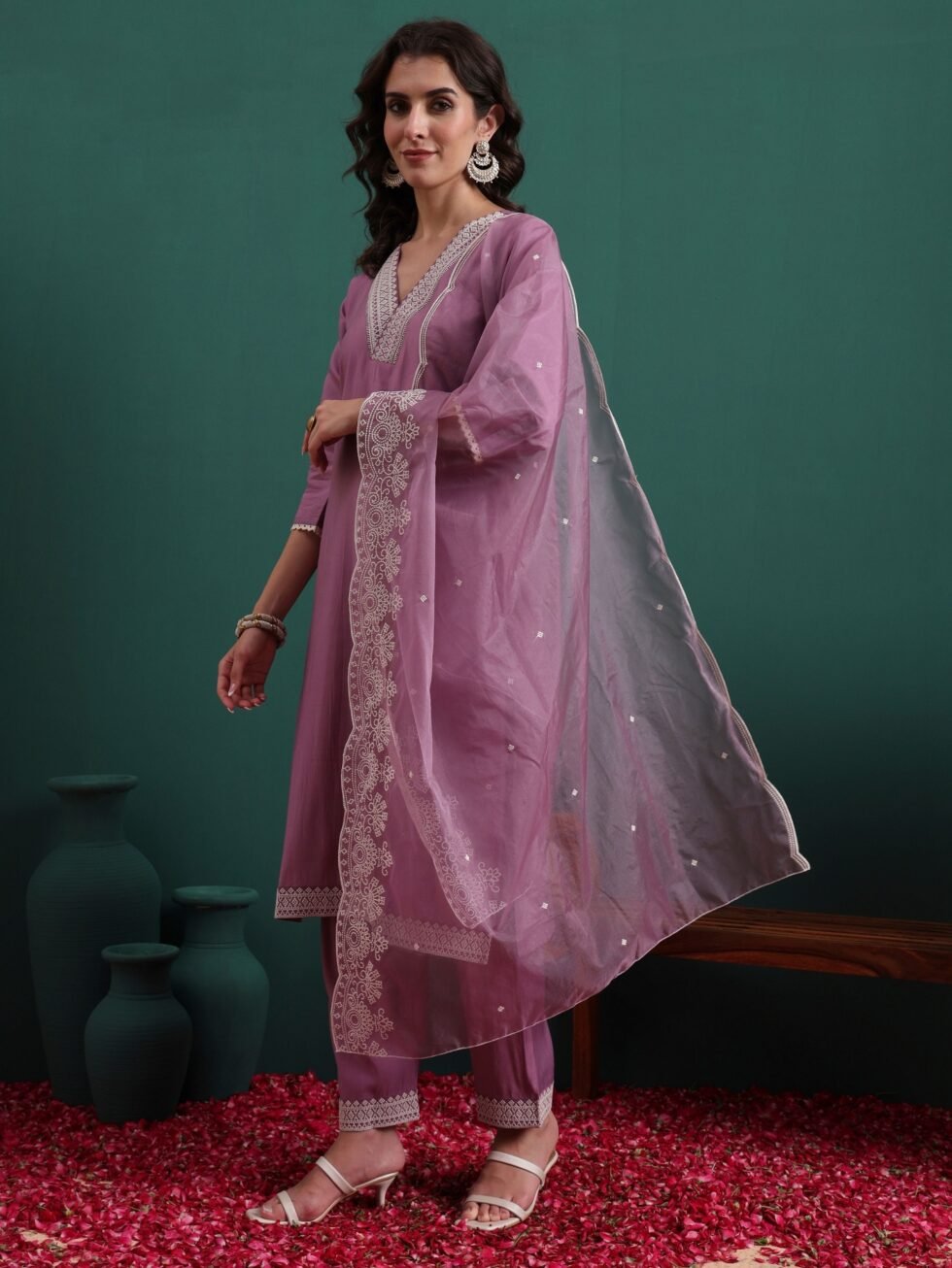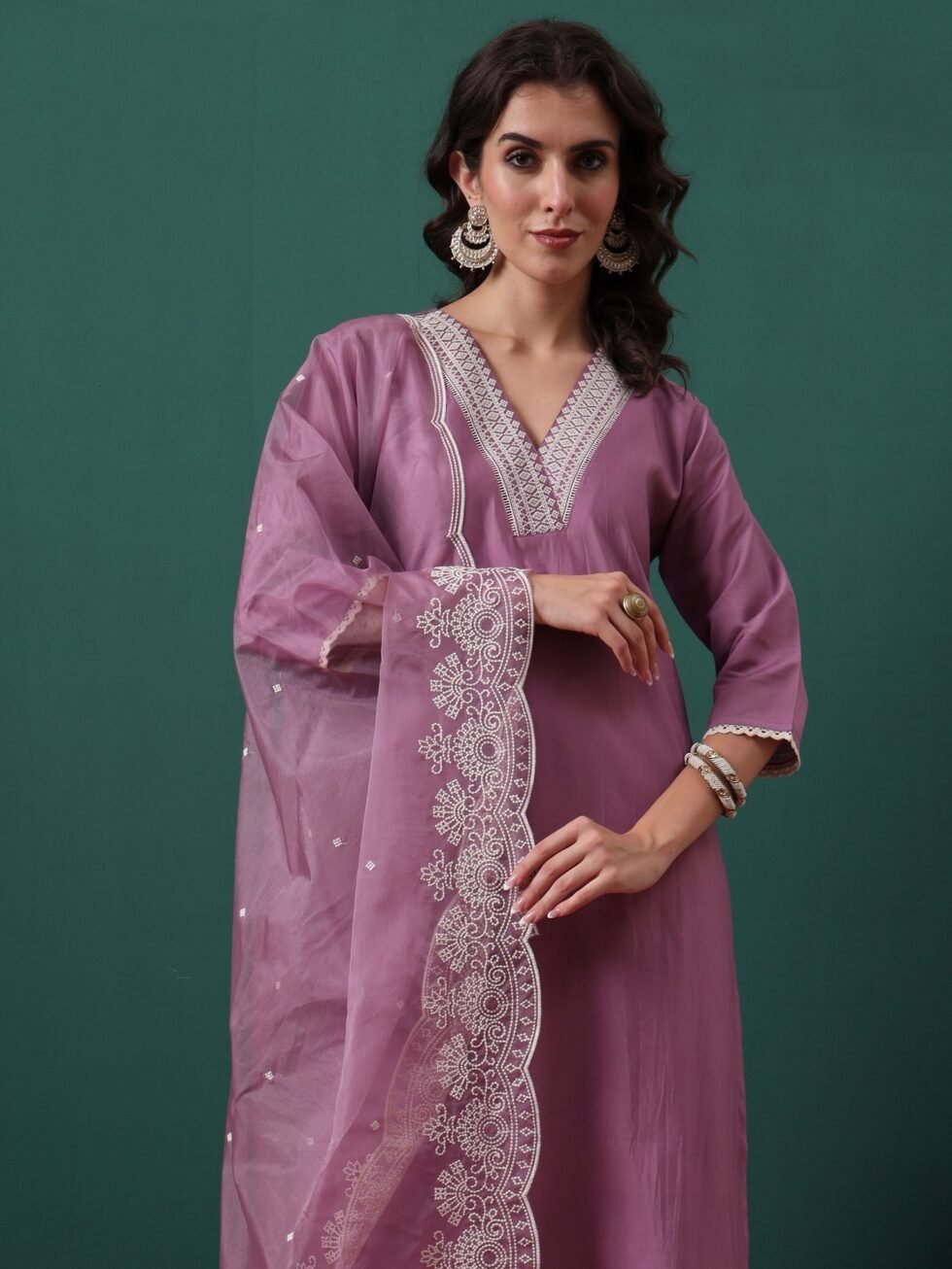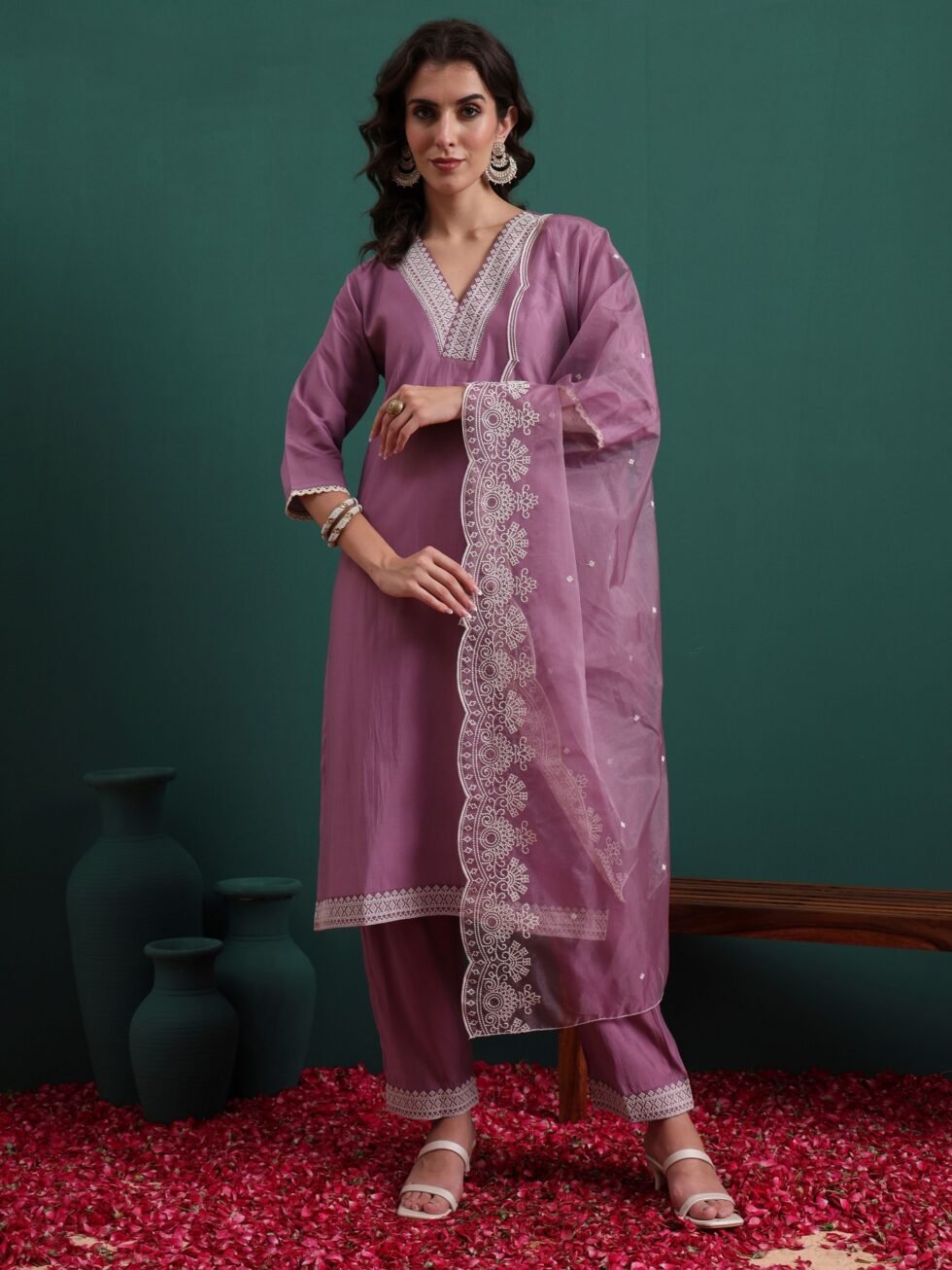 Women’s Silk Blend Embroidery Straight Kurta Pant With Dupatta