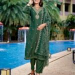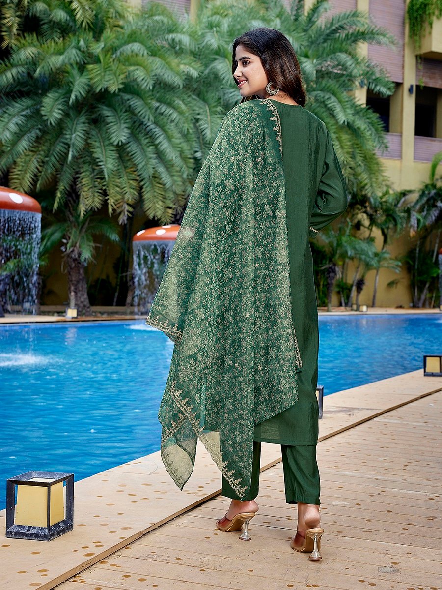 Women’s Viscose Chanderi Embroidery Straight Kurta Pant With Dupatta