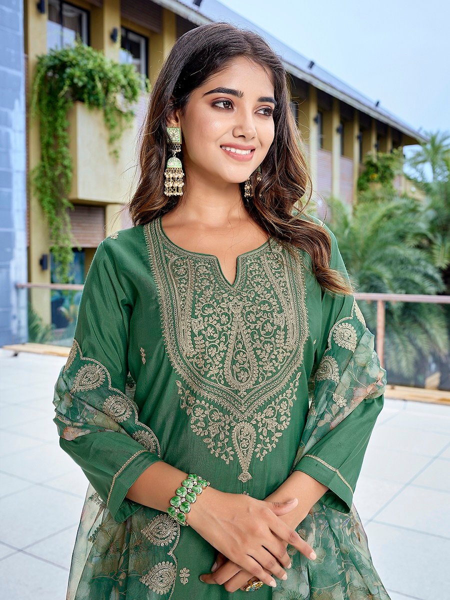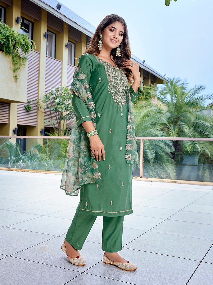 Women’s Viscose Chanderi Embroidery Straight Kurta Pant With Dupatta