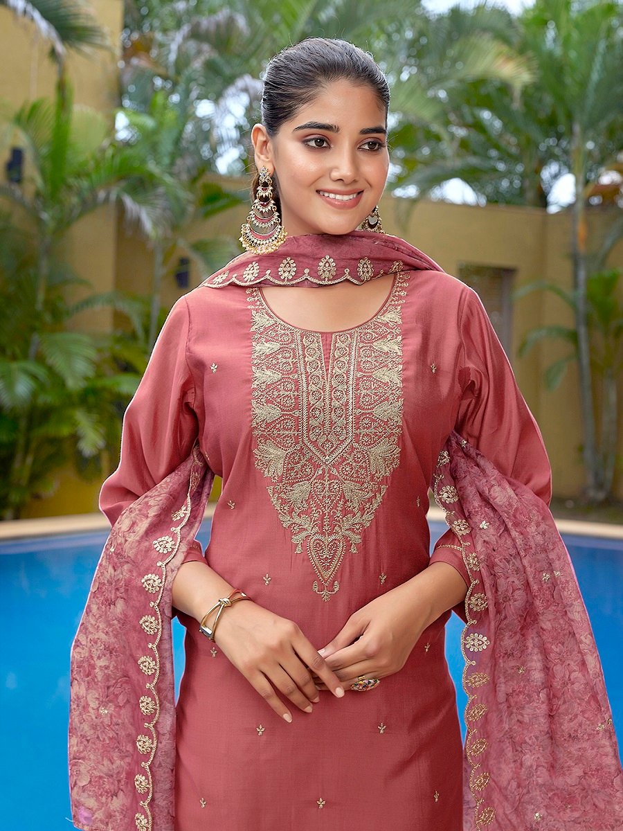 Women’s Viscose Chanderi Embroidery Straight Kurta Pant With Dupatta