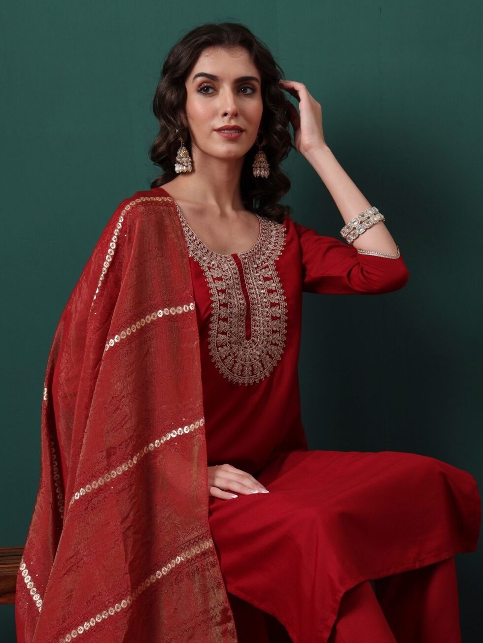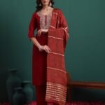 Fashion Kurta set is available in viscose material with woven zari dupatta. This kurta set has an embroidery work. Perfect for wedding, party, festive wear outfit
