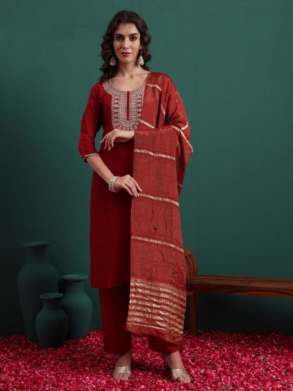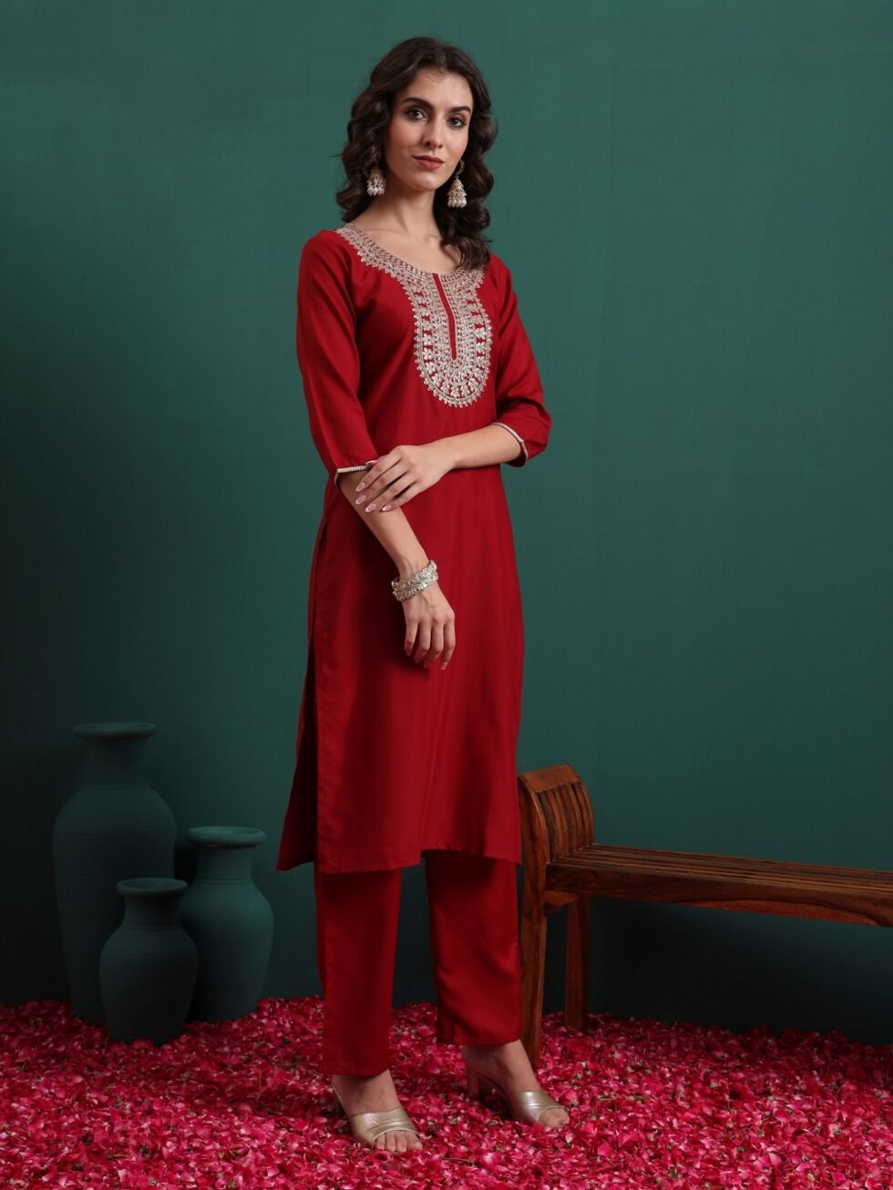 Women’s Viscose Embroidery Straight Kurta Pant With Dupatta