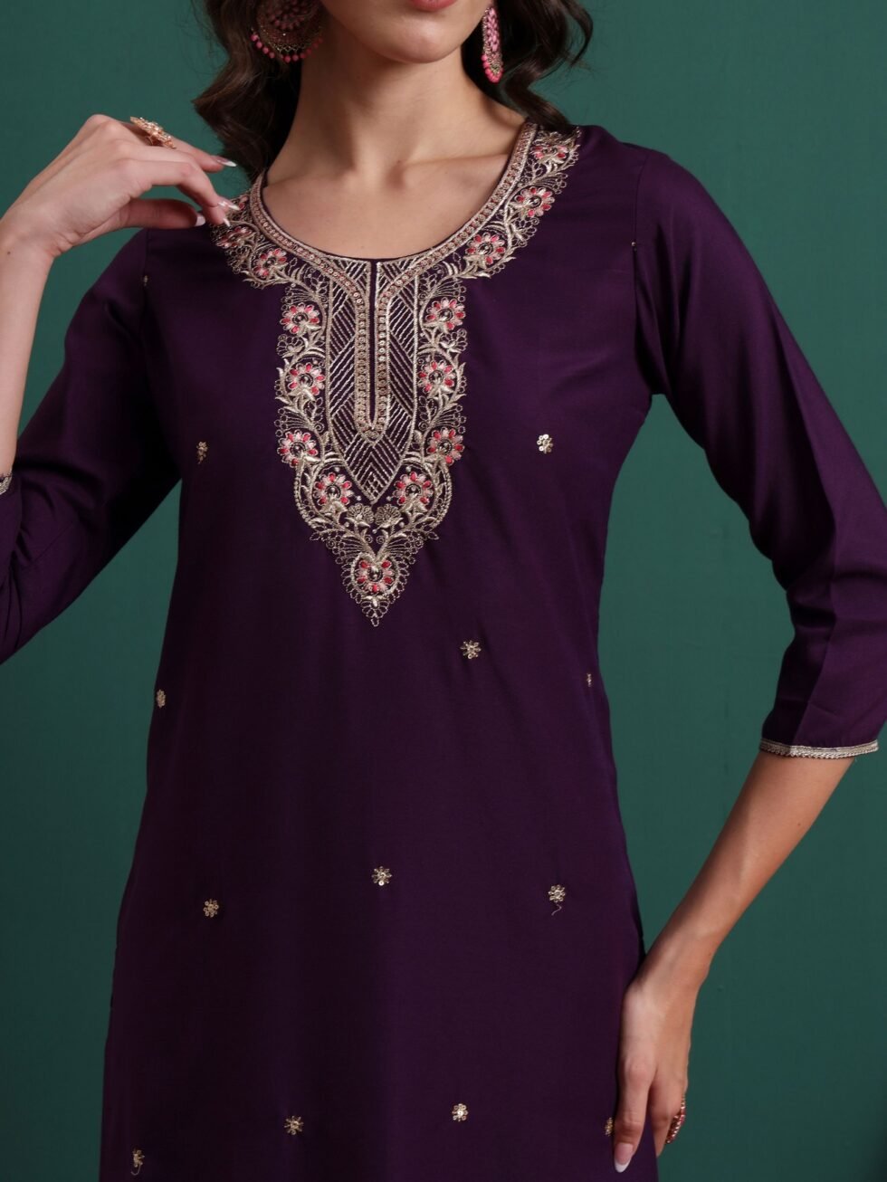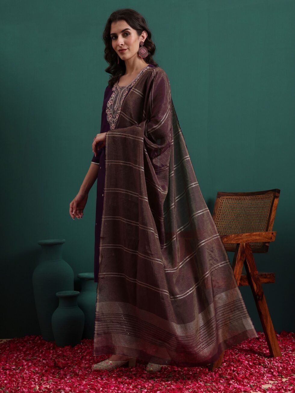 Fashion Kurta set is available in viscose material with woven zari dupatta. This kurta set has an embroidery work. Perfect for wedding, party, festive wear outfit